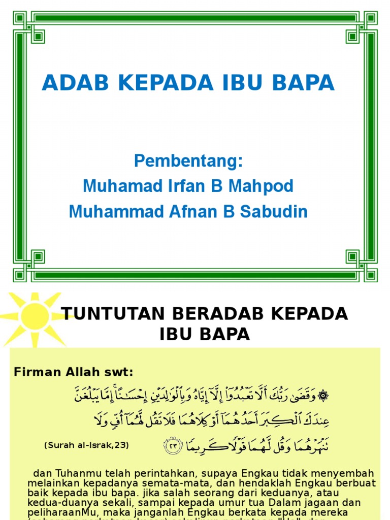 Berbakti Kepada Ibu Bapa from imgv2-2-f.scribdassets.com Check spelling or type a new query. Maybe you would like to learn more about one of these? Berbuat baik kepada ibu bapa. We did not find results for: